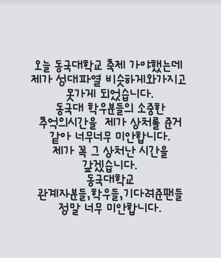Then "I'm so sorry that I hurt the precious memories of Dongguk University students." I'll make sure to pay for that hurtful time," he apologized.