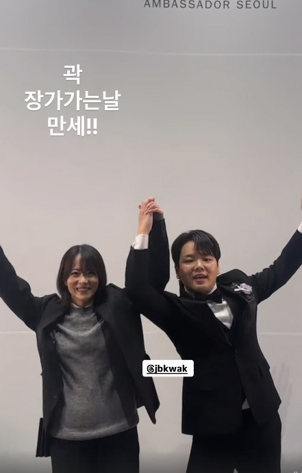 Actor Ryu Hyun-kyung also "Long live on the day you marry Kwak!!" and the image of Kwak Tube holding his hand and raising his arms up in a flash.