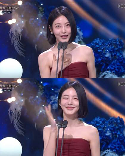 The actors who filled the auditorium on this day added vitality to the awards ceremony through active communication with the stage. Shin Young-eun, who appeared as a supporting actor award presenter, firmly established herself as a 'reaction queen' who is not intimidated even in front of seniors. Shin Ye-eun "I'm a self-proclaimed and self-proclaimed reaction master. So if you think, "The camera is coming to me. Is it okay if I show you how to react?" and then go, "Oh, you're filming me!"," he said, drawing laughter by posing several times.